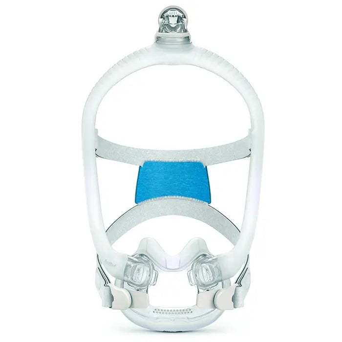 The AirFit F30i is a minimal-contact full face CPAP mask featuring a top-of-head tube connection, designed to keep tubing out of sight and out of your way allowing unrestricted movement and comfortable sleep in any position even for side or stomach sleepers. Its UltraCompact cushion sits under the nose, not over it, reducing pressure and red marks on the nasal bridge